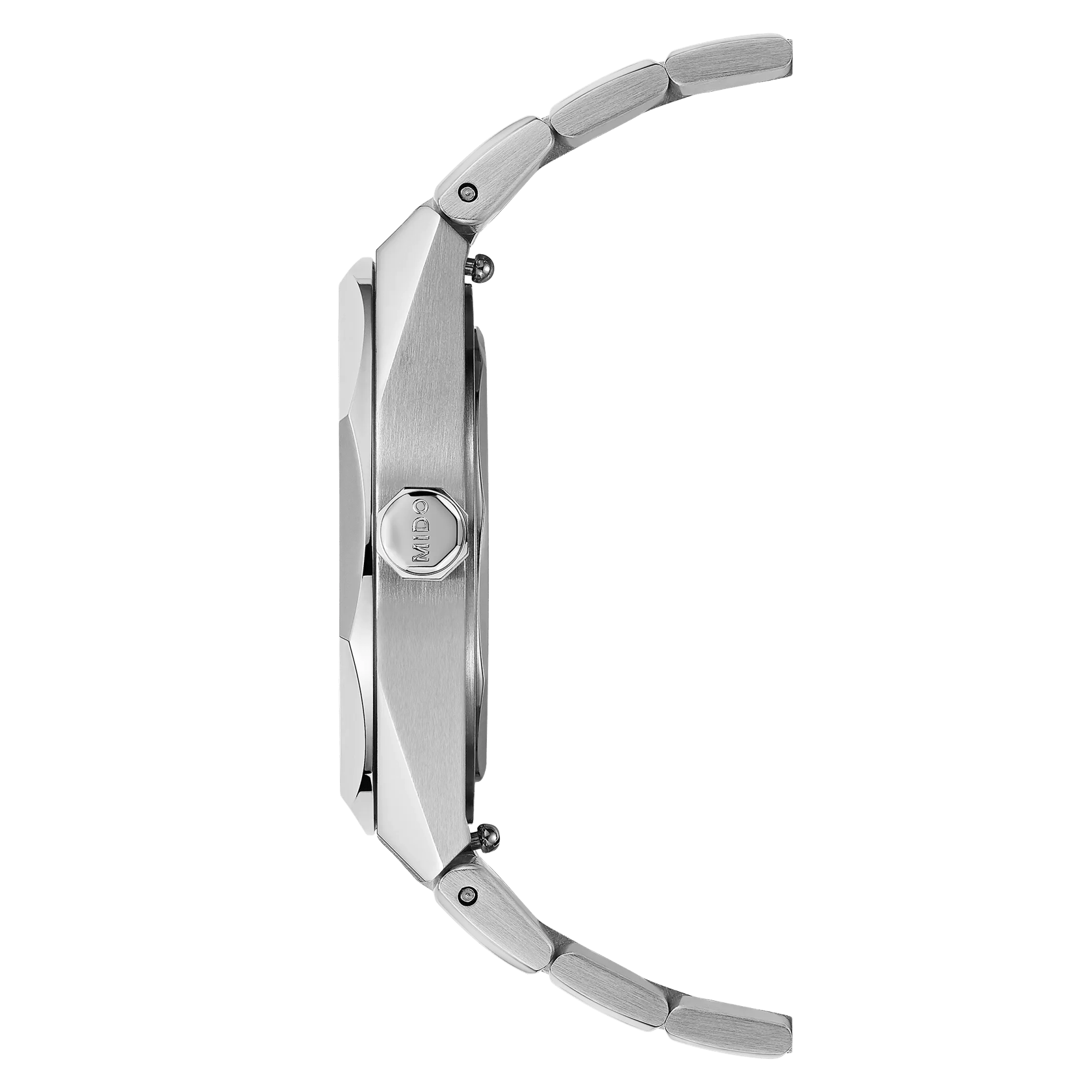 With its clean lines, balanced 40 mm case and distinctive octagonal bezel, the Multifort 8 One Crown showcases a bold and contemporary design. Its dial, structured with horizontal grooves, plays with rhythm and depth, while Super-LumiNova® ensures perfect legibility. A double-sided anti-reflective sapphire crystal protects the dial, enhanced by a satin-finished steel case with polished edges. Powered by the Caliber 80 – a Swiss automatic movement with extended autonomy, visible through the transparent case back – this timepiece reflects MIDO’s vision of TECHNOMETRY: a harmonious fusion of technology and geometry. Robust, precise and stylish, the Multifort 8 One Crown is made for those who demand excellence with character.
