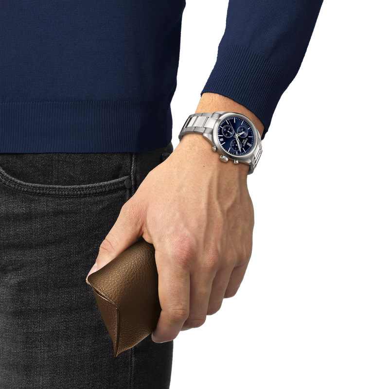 The PR100 collection offers classic quartz chronographs in various colours. These sporty yet classy timepieces feature a polished middle row on the bracelet for a shinier look, a white disc in the date window, and a standard second hand. The G10.212 chrono quartz movement provides precision and robustness, complemented by water resistance up to 10 bar (100 meters/330 feet), and visibility in low-light conditions is guaranteed by the Super-LumiNova® coating on the needle-shaped hands.
