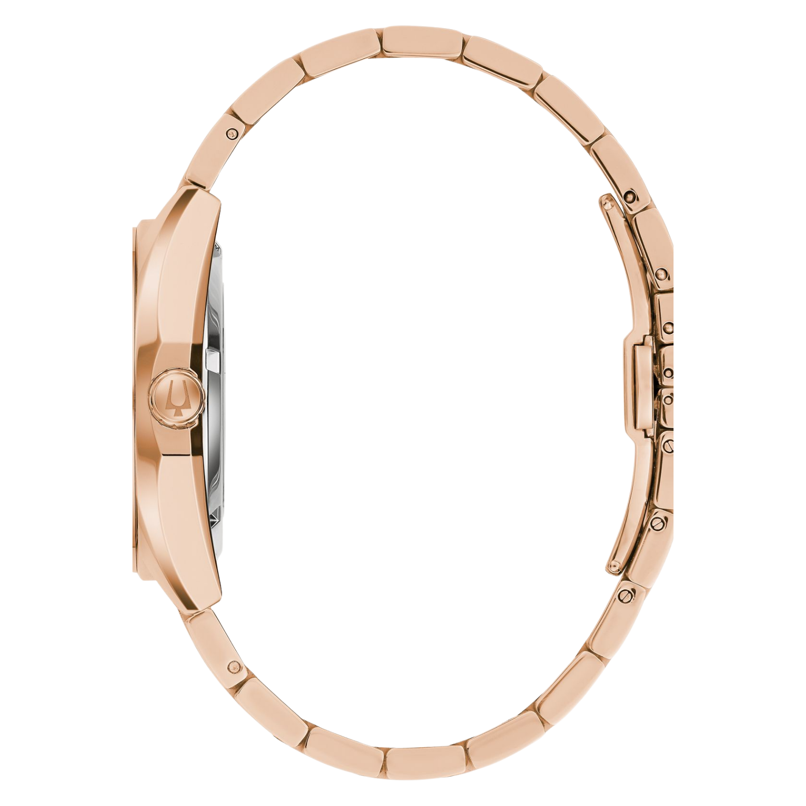 Defined by exceptional quality and sophisticated aesthetics, the Bulova men’s Surveyor is the quintessential modern timepiece. Sculpted edges and faceting distinguish the rose gold-tone stainless steel case, which provides an effortless wear on the wrist, with polished and brushed finishing, a flat sapphire crystal, and a 3-link rose gold-tone stainless steel bracelet with a push-button deployant clasp and easy-release latched spring bars. The captivating aubergine dial has a sunray finish, and features rose gold-tone accents, hands with luminescent fill, cutout minute markers, a magnified date display, and a recessed minute track. The watch is powered by an automatic movement with 21-jewels and a 42-hour power reserve, which can be seen through an exhibition window on the case back. For those with a discerning eye for refined luxury, this Bulova men’s timepiece is the obvious choice.