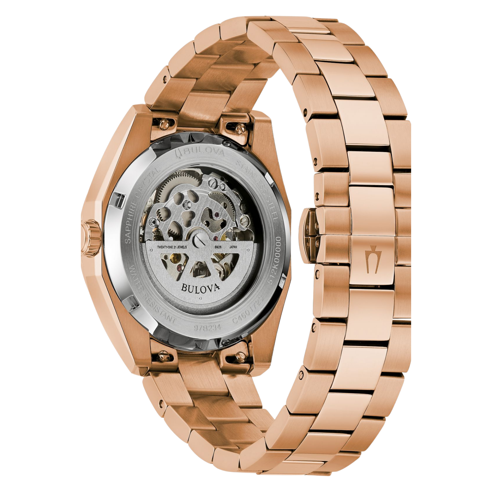 Case Material: Rose-gold Stainless Steel, exhibition caseback